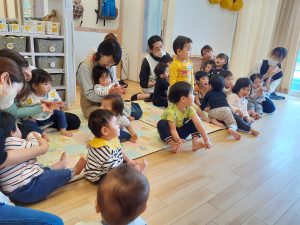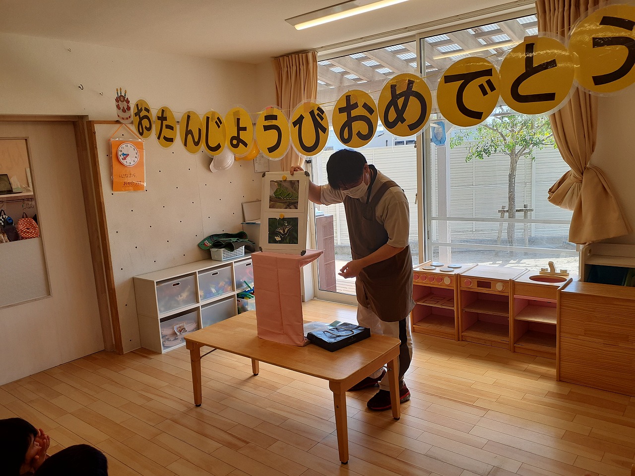 ぱんだぐみさんはちょっぴり緊張気味でしたが、誕生会が始まるとみんな興味津々!