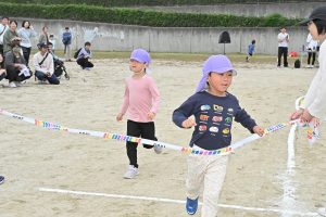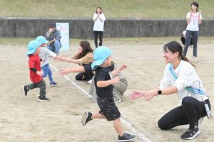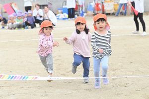 3歳児は直線コース、4歳児はハーフトラックを駆け抜けます!