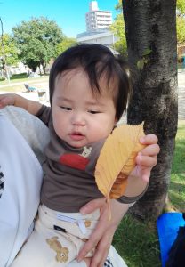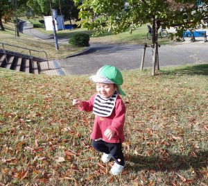 落ち葉を見つけて葉っぱの感触を楽しんだり、