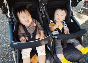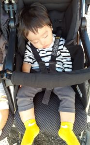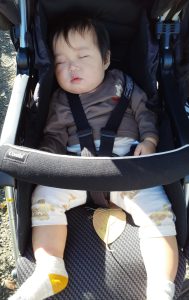 公園で遊んだ後は、散歩車に乗って公園の遊歩道をぐるりとお散歩。