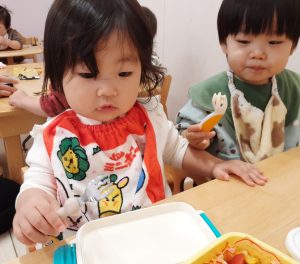 手を頬に当てて「おいし~」と言ったりして嬉しそうに食べていました♪
