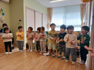 ♪きらきらぼし、♪山の音楽家を、歌いながら好きな楽器を持って演奏しましたよ!