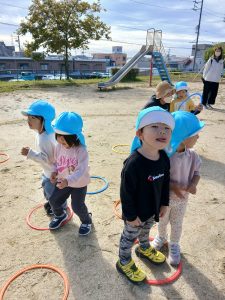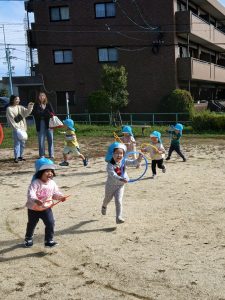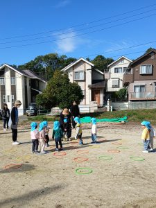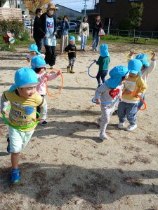 フープでは色探しをしたり、ハンドルに見立てて走ったりして遊びましたよ!