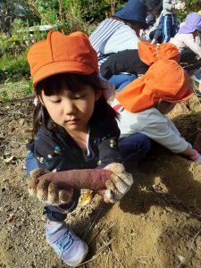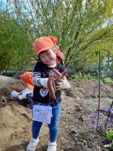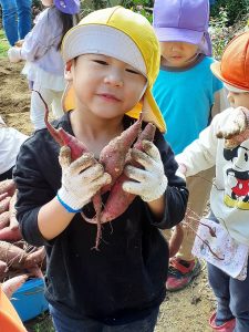 園児全員が大きなおいもを何本もお土産にできましたよ。