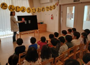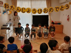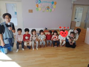 みんなでハッピーバースデーの歌のプレゼントをうたってお祝いしています☆