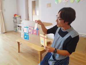 次は、保育者からのお話のプレゼント。「王様のお願い」というお話のパネルシアターです。
