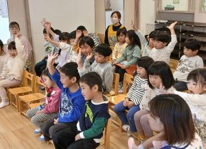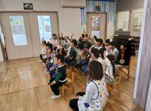 友だちの質問コーナーでは、聞きたい事がいっぱいで沢山手があがる幼児組さん。