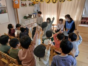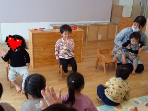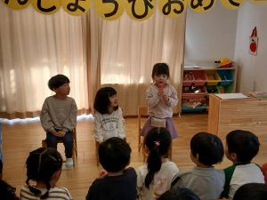お誕生会の始まりは、『はじまるよ』の手遊びから♪