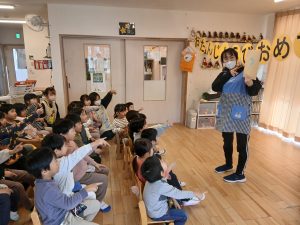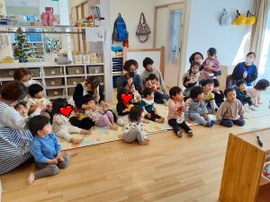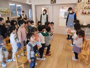 最後に幼児クラスさんも『あわてんぼうのサンタクロース』を歌って今月のお誕生日会はおしまい!