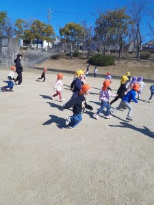 逃げている子に皮をむく動作をしてもらうと逃げられるという遊びです。