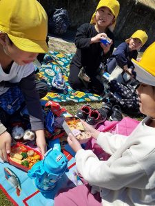 お弁当を見せ合ったり「美味しいね」と味わったりしながら