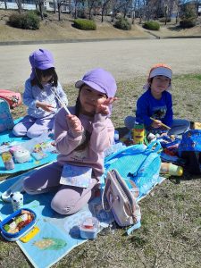 空に届くくらいの大きな声で「いただきます!」の挨拶をし、お弁当を食べていた子どもたちです。
