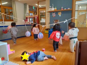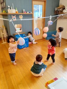 2025年12月10日たんぽぽ組(0歳児)さんが風船あそびをしましたよ。